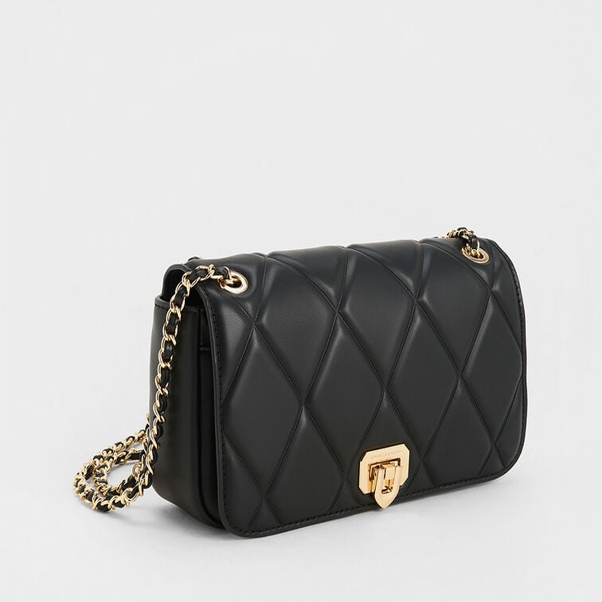 Túi đeo vai chần bông Arwen Diamond-Quilt – Màu Đen