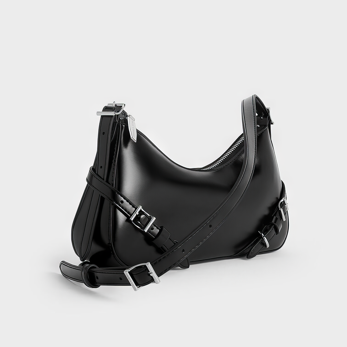 Túi đeo vai dáng cong Trice Metallic Accent Belted – Đen