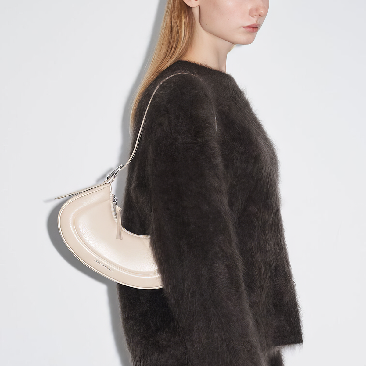 Túi đeo vai phom bán nguyệt Petra Curved – Xám trắng