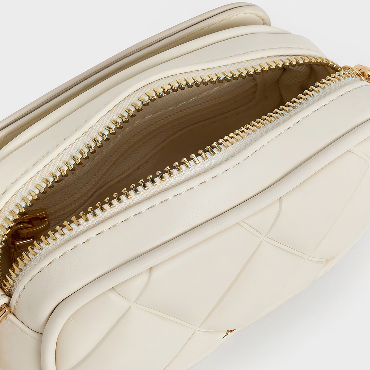 Clutch chữ nhật Quilted Push-Lock – Kem
