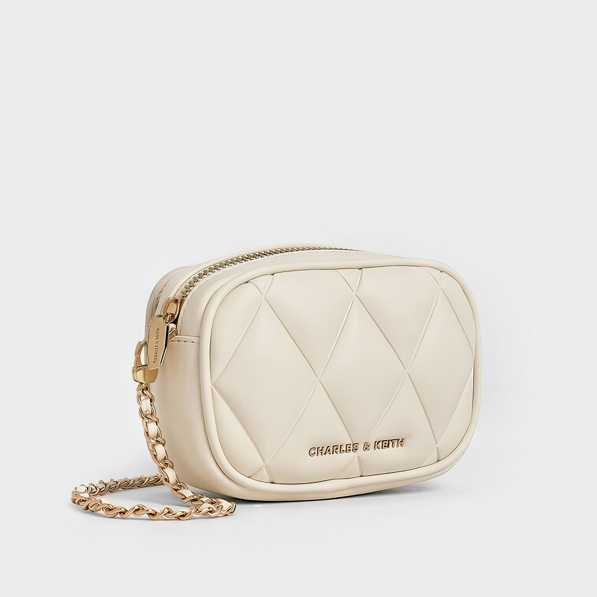 Túi đeo vai hình thang Lane Chain-Link – Kem
