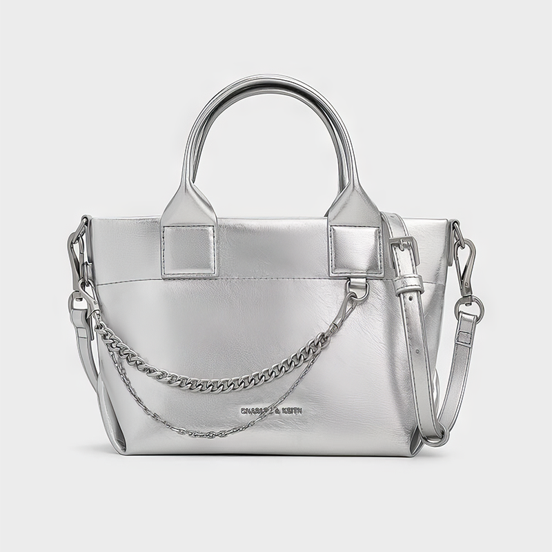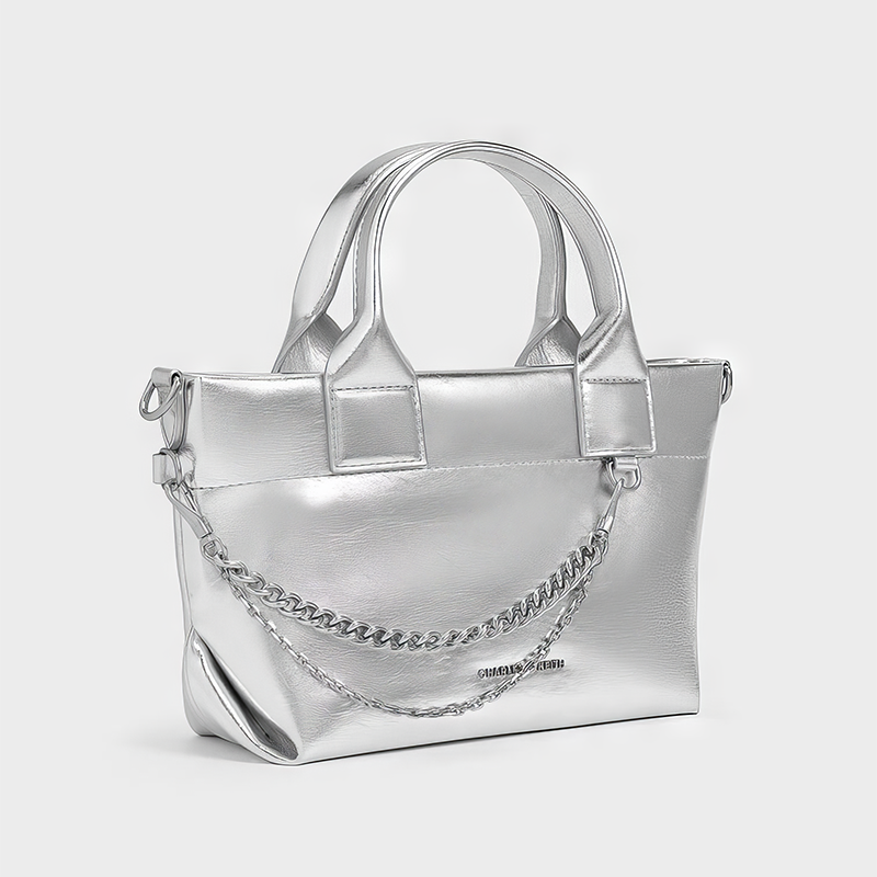 Túi tote hình thang Atwood Crinkle-Effect Chain-Embellished – Bạc
